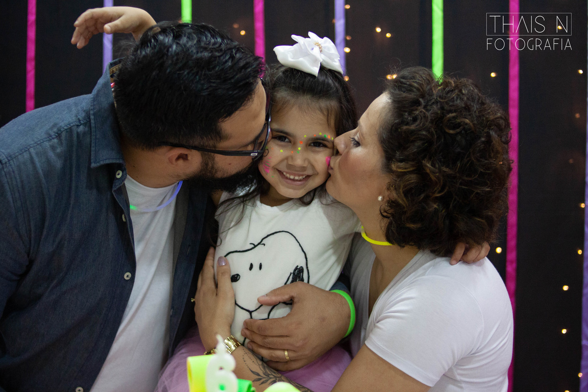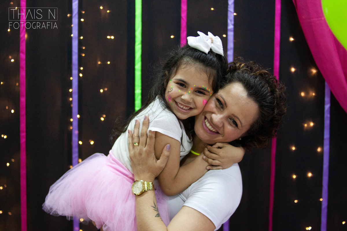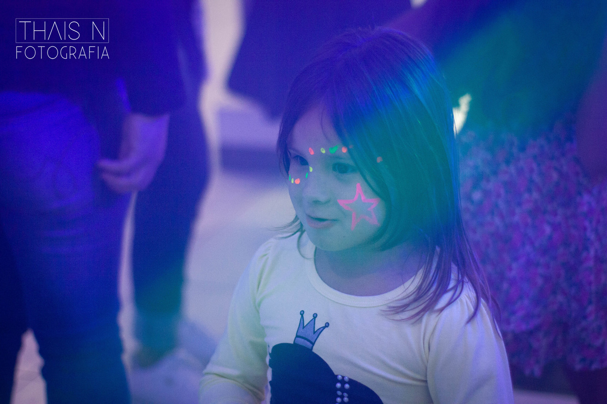 Segundo momento inesquecível que fotografo nessa familia, a Isa é uma menina MUITO animada e a sua festa de 6 anos - uma balada neon kids - combinou muito com ela! ♥